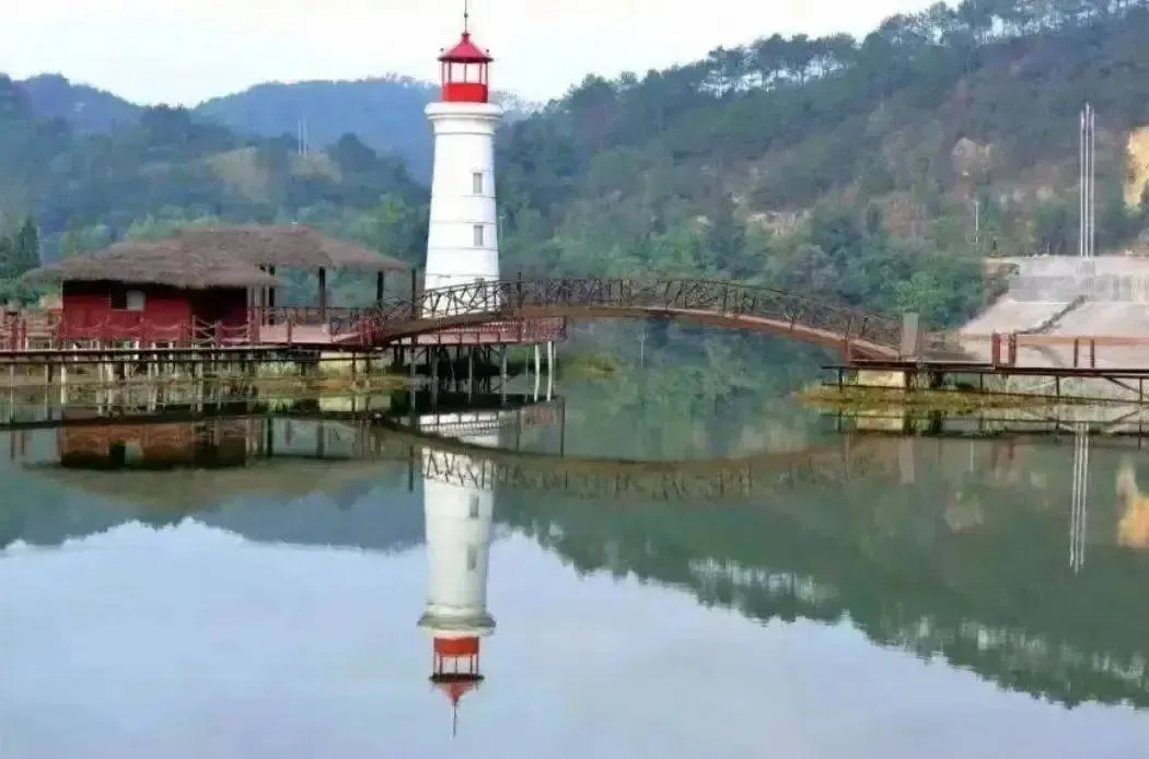 鹤鸣洲栈桥坐落在黄花湖湿地公园上