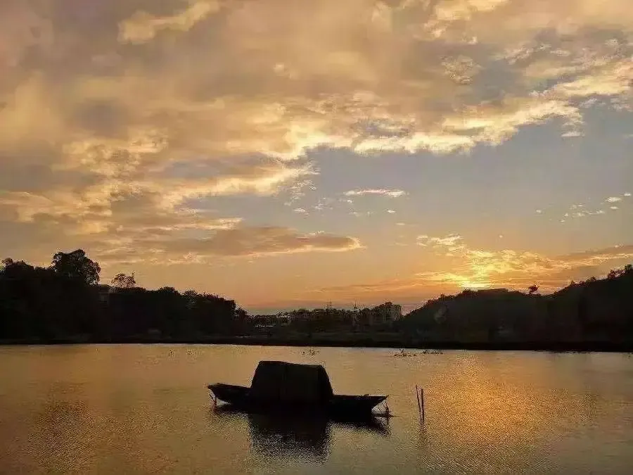 湖心湖光山色、沙滩湿地、鹭鸟飞绕、游鱼嬉戏