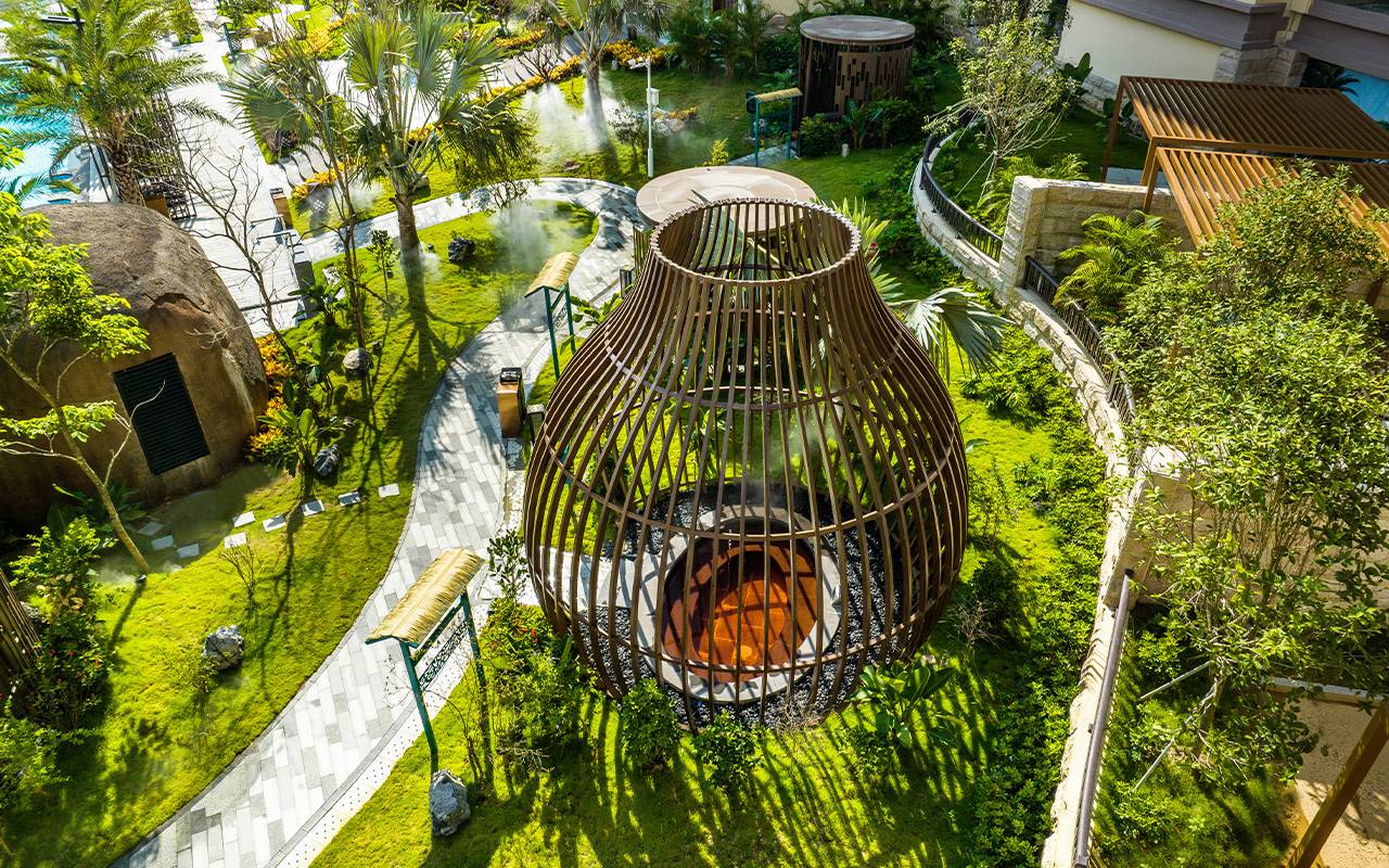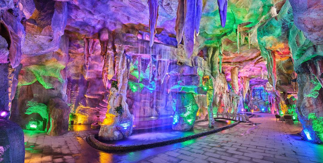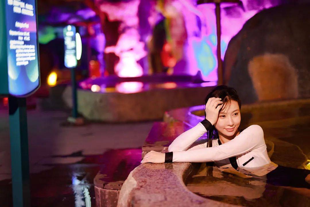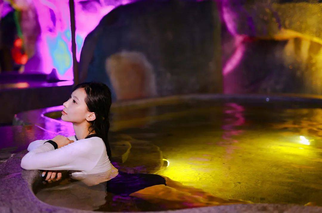 水疗活力区、秘境溶洞区,共计50个温泉 泡池。
