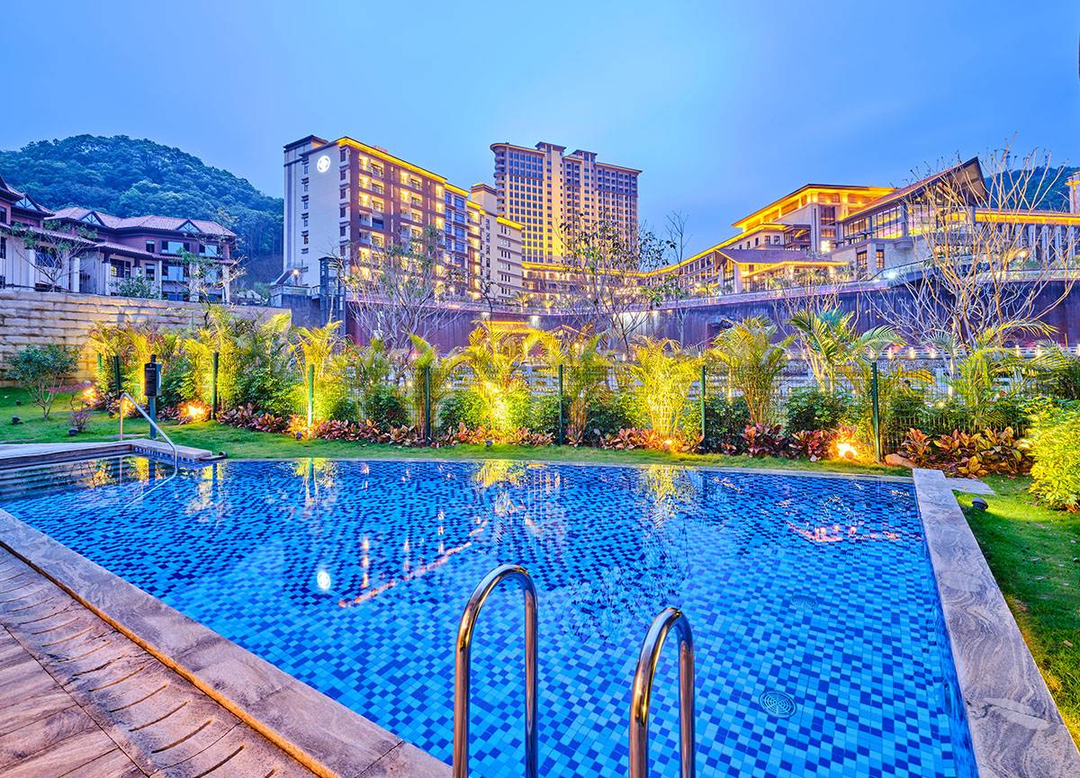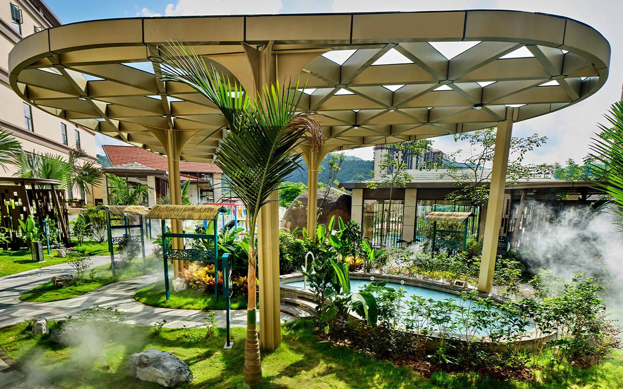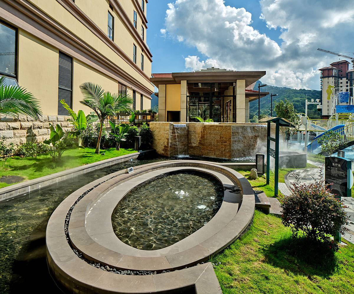 酒店温泉属偏硅酸氟泉,富含锶、锌、钾、 氯、钙、镁等多种人体必需的微量元素。 温泉区分为南昆山特色区、药浴养生区、 水疗活力区、秘境溶洞区,共计50个温泉 泡池。