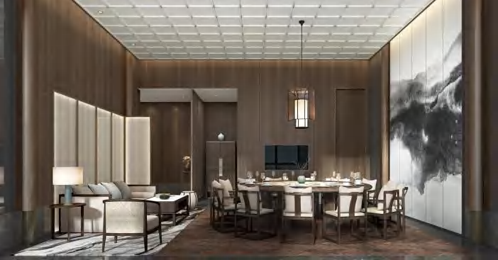 采用现代奢华风,中央悬挂环形奢华水晶吊灯