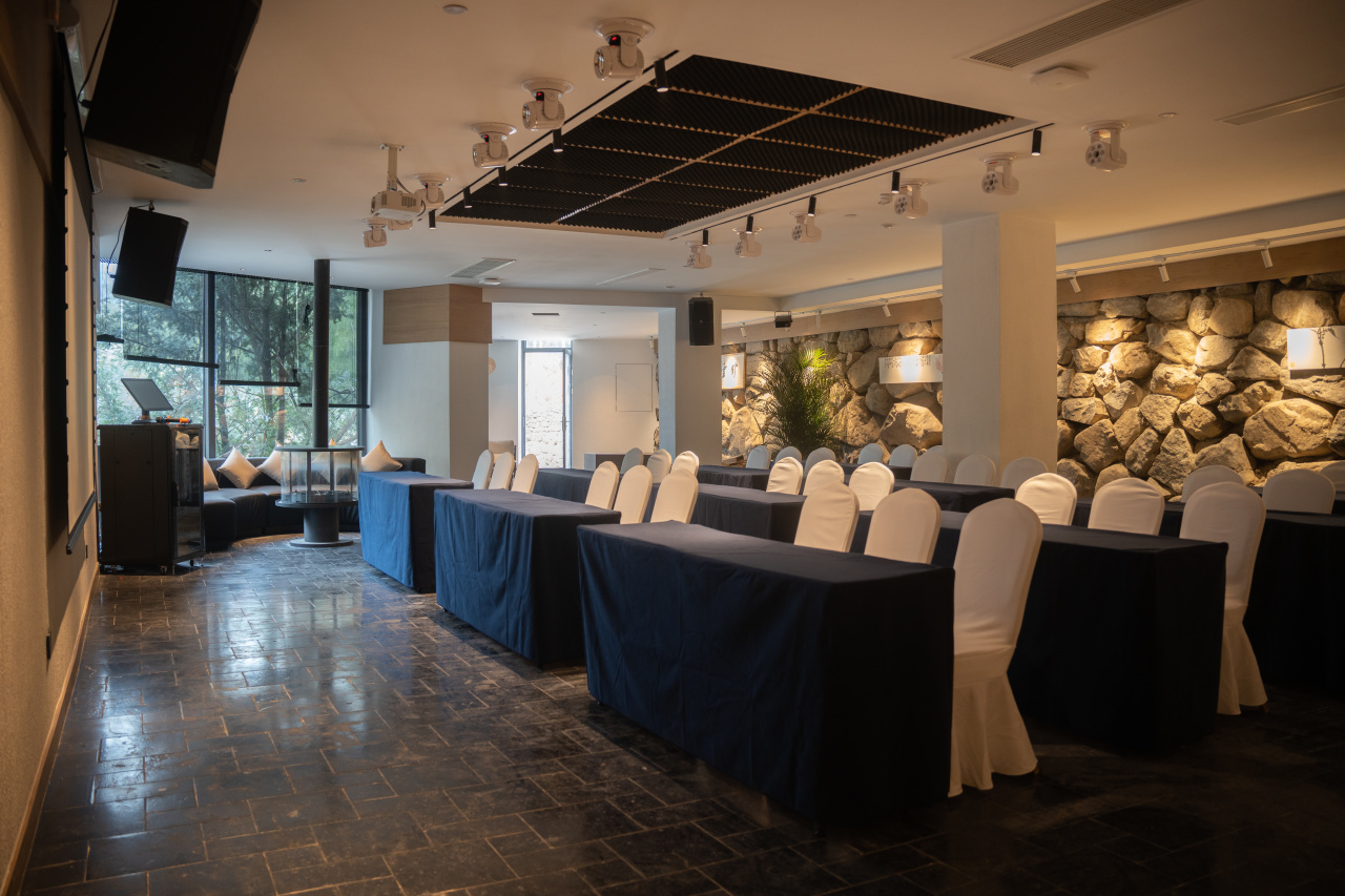 酒店拥有面积总计逾600平方米的宴会及会议空间。其中多功能厅面积300平方米,分隔成满足户内外两个功能的活动区域,配备高清投影屏幕。还设有一间独立董事会会议室可满足远程会议需求。
