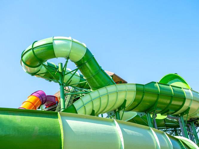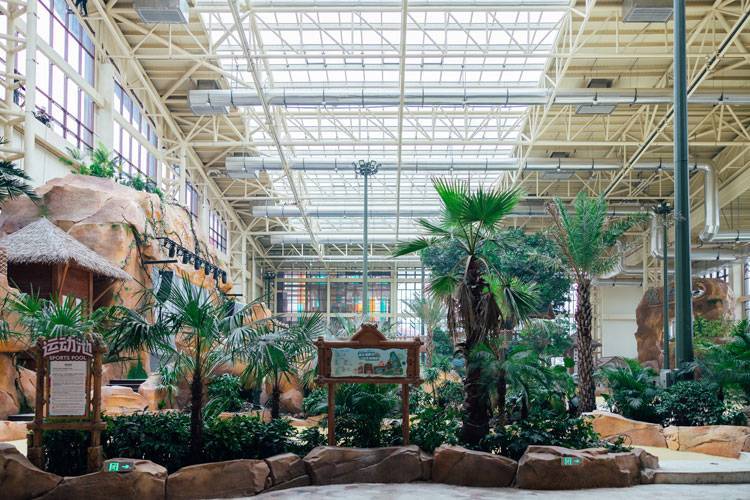 巨型透明穹顶笼罩之下的室内水上乐园,